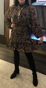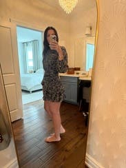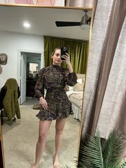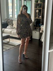 Loved the print and the style of the dress. It was short but worked perfect for me being 5’3. It was slightly tight in the waist/hips but not bad enough to be unwearable for an event.