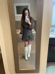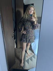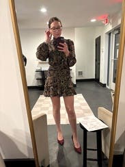 This isn’t how I wanted to style it…but it’s been -800 degrees here, so tights and boots, it is. If you want to feel snatched and show off your legs, get this dress! It does run small, so I sized up as recommended by others. But I love it, and will rent again when it’s warmer with bare legs and strappy heels.
