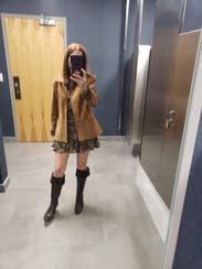 Fun skirt with a more conservative top. Fit great and very slimming.