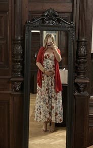 Loved this dress for my baby shower. It was super flattering, easy to wear, and looked great in photos! I didn’t want to take it off!