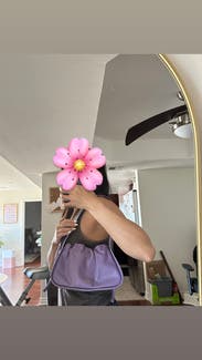 This purse was such a fun pop of color for outfits and just barely big enough for everyday use - I downsized to a card holder instead of my usual wallet, but otherwise it held pretty much everything I normally would carry like phone, sunglasses, and keys. The only downside for me is that the opening is a big small and the strings scrunching the top are in fact not adjustable to make the opening wider. The magnetic closure also isn’t particularly strong but that wasn’t much of an issue for me