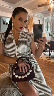 I loved this purse! Great size for a wedding or event! I did unclip the pearls though because I thought they looked a little cheesy