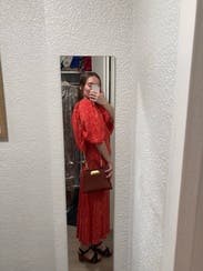 absolutely love this red bag! 🎒 The quality is fantastic, and the color is a beautiful reddish maroonish tone. It’s a small bag, but it fits many items perfectly! The chain strap is an added bonus for versatility. It's stylish and functional, and I highly recommend it to anyone looking for a great bag!