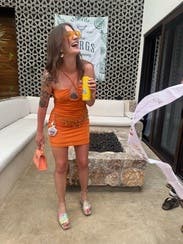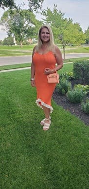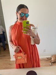 Such a fun purse to match this dress! Doesn’t hold a lot but perfect for a phone, lipstick, & keys!