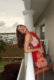 Such a cute bag! Absolutely in love with this Zac Posen design. I knew this particular bag was going to be small based off measurements, but didn't realize exactly *how* tiny until I tried putting my cell phone and keys in. I made it work, and managed to add a tube of lip gloss. The pink reminds me of a Creamsicle IRL. Super fun, and will likely be renting again if I don't end up keeping it.