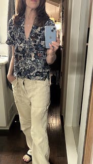 Loved this shirt - versatile. Wore it taking my kids to school + out to dinner with friends. A little low cut for work.